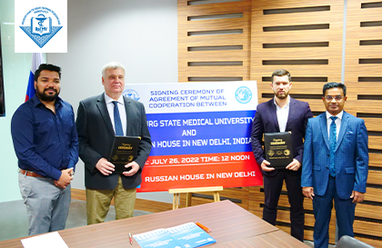 It was signed with a mutual objective to develop educational cooperation between the Representative Office of Rossotrudnichestvo in India and the Orenburg State Medical University, Russia.
